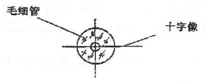 光靶的小孔对准毛细管的轴,并移动光靶的位置,用眼睛观察,选找毛细管中心的亮点(关键之处)。通过光靶从端面镜观察毛细管时,很容易看到毛细管内径的亮斑,不要误认毛细管内孔的亮斑为亮点。看此亮点的要点是:必须沿着毛细管轴心看;必须看毛细管内孔的圆处。如果这个亮点直径小于0.5毫米,则它就是毛细管的轴心,如图4。当看到小亮点后,轻微移动光靶,让亮点处在毛细管亮斑的中心。此时不必管十字叉丝像所处的位置,只要达到图4所示状态,即说明已将光靶的小孔放在毛细管的轴线上了。